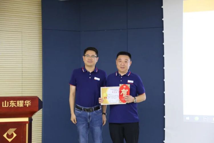 公司执行总经理朱弘为高庆鹏总监(王翼飞代领)颁奖并合影留念