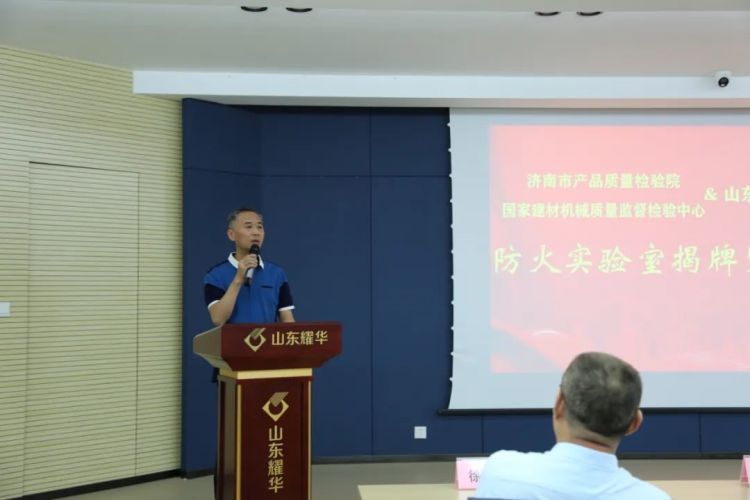 2021年8月9日下午,济南市产品质量检验院(国家建材机械质量检验中心)与山东耀华合作建立的防火实验室揭牌暨启用仪式在乐鱼网页版隆重举行。