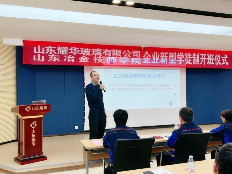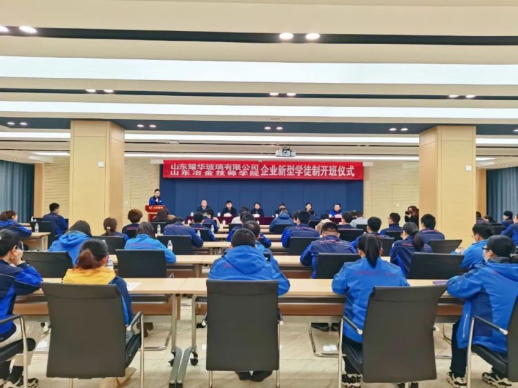 为贯彻落实党的十九大精神,加快建设知识型、技能型、创新型劳动者队伍,根据山东省人力资源和社会保障厅、山东省财政厅印发的《关于全面推行企业新型学徒制的通知》文件精神,山东耀华玻璃公司联合山东冶金技师学院共同开展企业新型学徒制培养班。2021年12月22日下午,企业新型学徒制培养班开班仪式在山东耀华隆重举行。