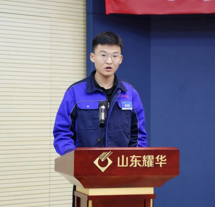 学员代表程嘉鑫代表全体学员表态:将珍惜政府、学校与企业提供的新型学徒制学习机会,以最好的状态积极参加每次课程,通过不断的学习和磨练,发现自身的不足,确立方向、积极进取、不断进步,提高专业技能操作水平,以确保高质量、高效率的完成各项生产任务,为公司高质量发展贡献自己的一份力量!