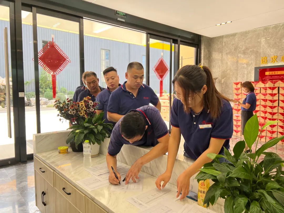 福利发放现场洋溢着温馨和谐的喜庆氛围,一份份中秋礼品代表着美好祝愿,也传递着公司领导对员工的关爱。