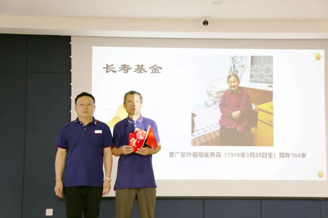 本年度长寿基金获得者为生产中心曹广泉外祖母崔养霞(出生于1918年3月25日,今年已104岁高龄)。